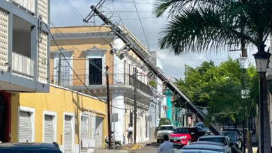 Poste caído deja sin electricidad al centro histórico de Mazatlán