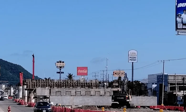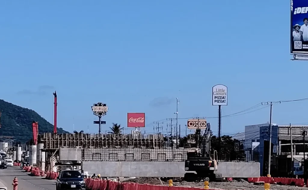 Mazatlán, Sinaloa.- La construcción del paso superior vehicular en Mazatlán continúa avanzando a paso firme, con evidentes progresos en la etapa de cimentación y armado de columnas sobre la intersección de la carretera federal México 15 y el libramiento Óscar Pérez Escobosa.